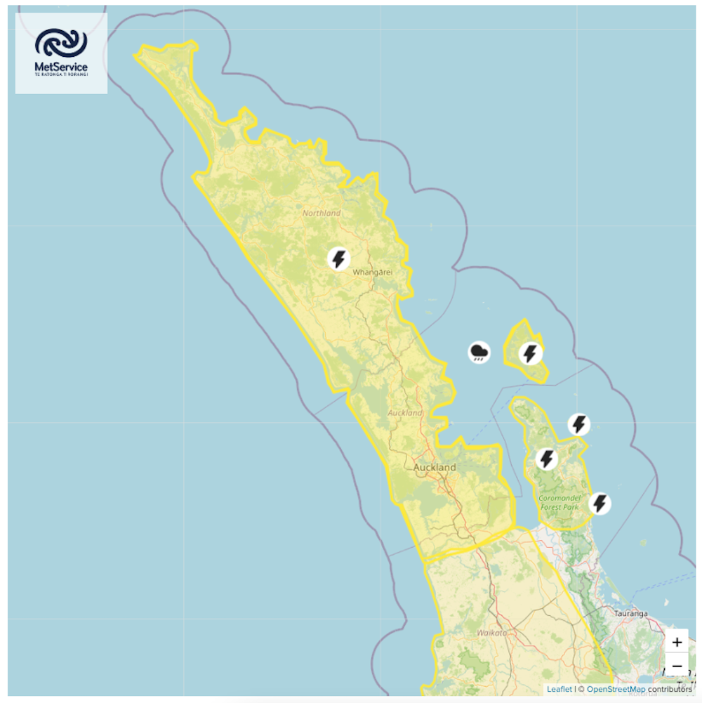 Auckland and Northland are bracing for a period of heavy rain, with thunderstorms and localised downpours expected from 5pm today until 5am Monday.