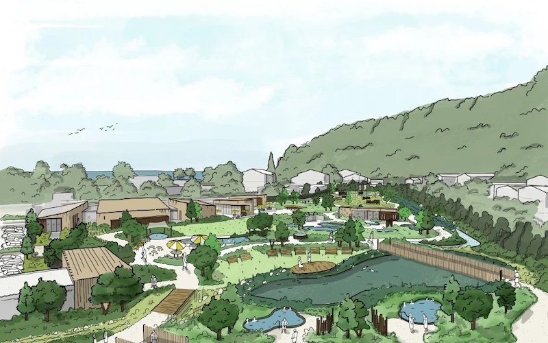 Concept designs for the currently empty site include 28 pools and wellness experiences along with saunas, reflexology walks and gardens.