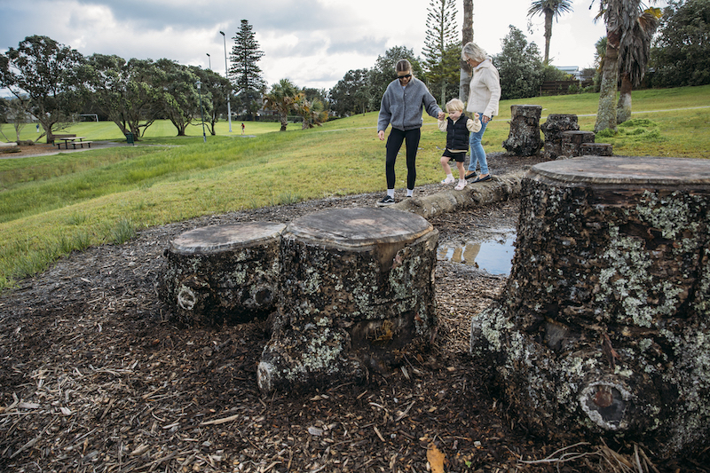 The park’s latest additions also lean into nature, with a balancing log trail installed earlier this year using large logs cut from a Norfolk pine donated by a homeowner in Ōrewa.