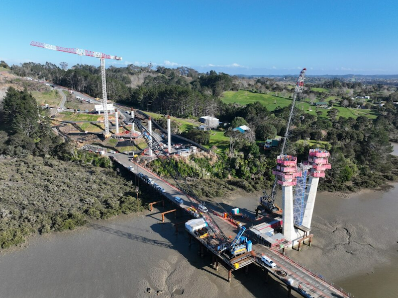 River users will also notice a temporary pedestrian bridge at the Wēiti River, while work continues on piers with the help of one of the largest tower cranes in New Zealand.