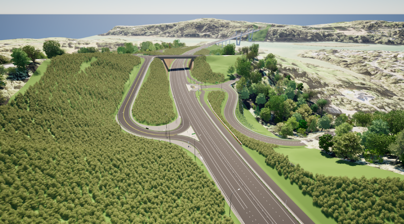 Render looking towards Whangaparaoa of the future Duck Creel Road connection. Image Supplied.